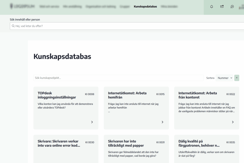 Med Sitevision TOPdesk Kunskapsdatabas Integration får medarbetare tillgång till ett levande bibliotek av artiklar, guider och instruktioner – utan att behöva kontakta support. Modulen gör det enkelt att söka, läsa och lämna feedback direkt i intranätet.
